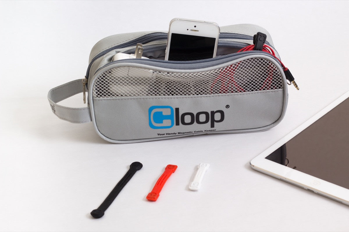 At home or on the go, dangling wires and cables often get tangled. Until now, I have depended on plastic-coated twist ties, but these often fall off and/or get lost. Cloop Magnetic Cable Keepers work well when used with relatively thin wires and cables. The package comes with three small and three large red, white, and black cable keepers made from stretchy silicone. As soon as my Cloops arrived, I cut open the package and tried them out. I threaded the smaller end of each wire into the slit (this keeps the Cloops from sliding or falling off), wound the wire or cable around my hand, and then pressed the magnetic ends together. Cloops are useful accessories that will help you tidy up your USB cables, earbuds, and chargers for cellphones and tablets. Also included is a compact metal base that holds six cable keepers for easy retrieval.